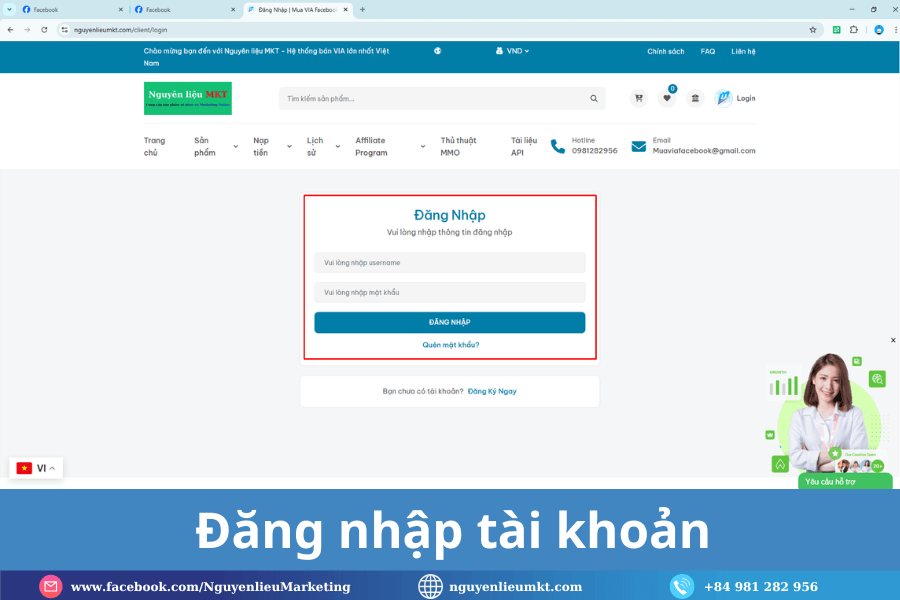 Đăng nhập tài khoản tại link: https://nguyenlieumkt.com/client/login