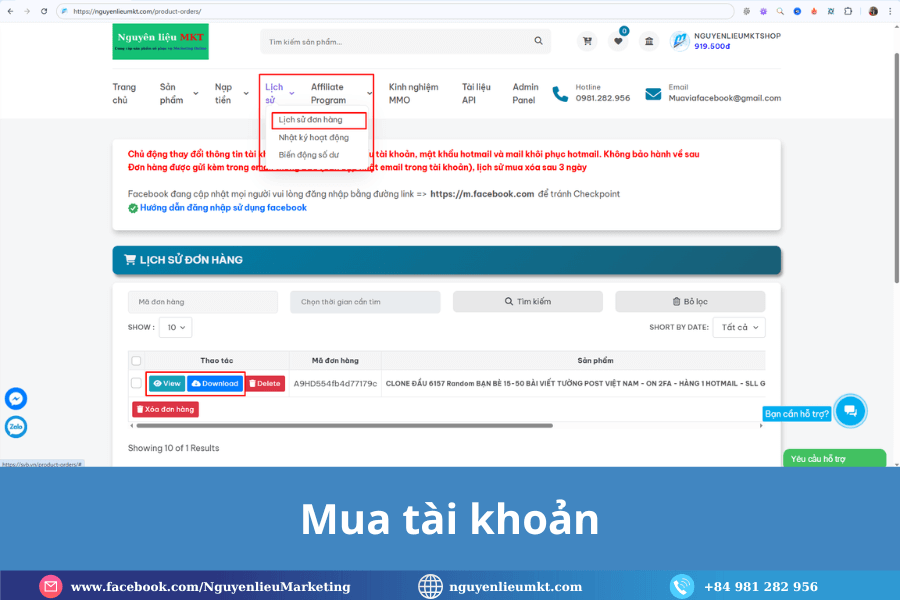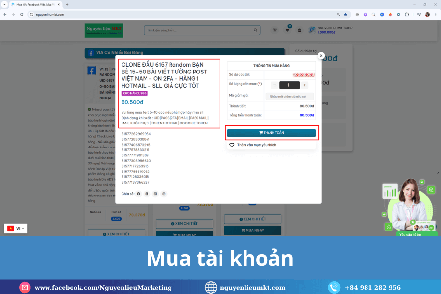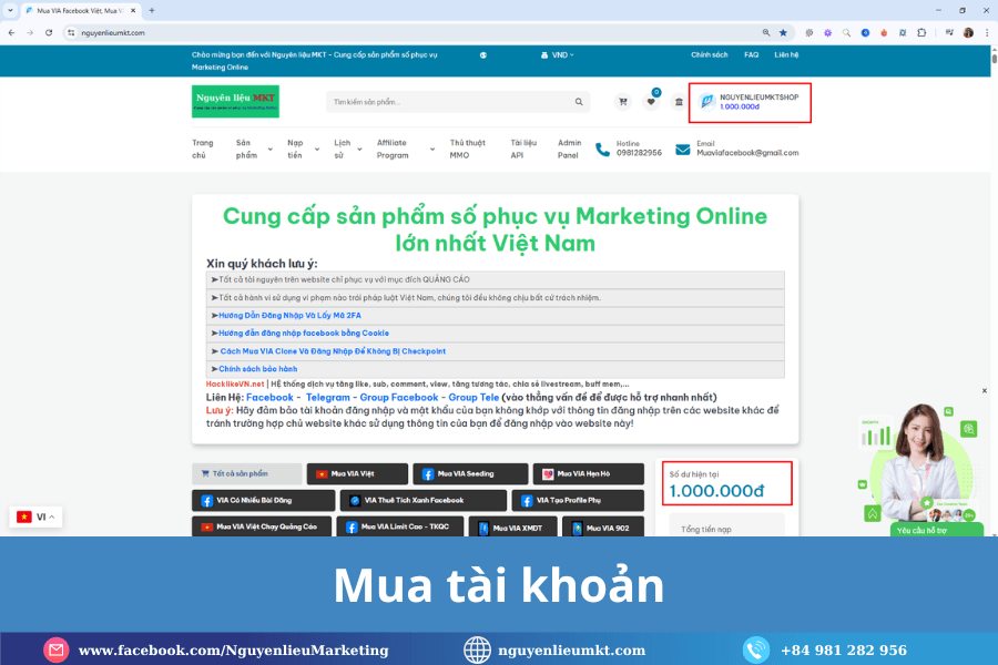 Hiện nay, có rất nhiều anh em cần mua VIA để chạy quảng cáo, seeding, hay nhu cầu khác. Tuy nhiên lại không biết cách để mua sao cho nhanh và tiện lợi nhất. Hôm nay Nguyên liệu MKT xin phép được chia sẻ cách để có thể giao dịch hoàn toàn tự động trong 1 phút. Vô cùng tiện lợi và an toàn tại web bán tài nguyên: Nguyenlieumkt.com