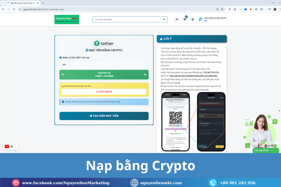 Cách 2:NẠP TIỀN QUA CRYPTO USDT