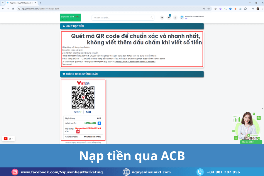 BƯỚC 3: Nạp tiền vào website để mua tài khoản