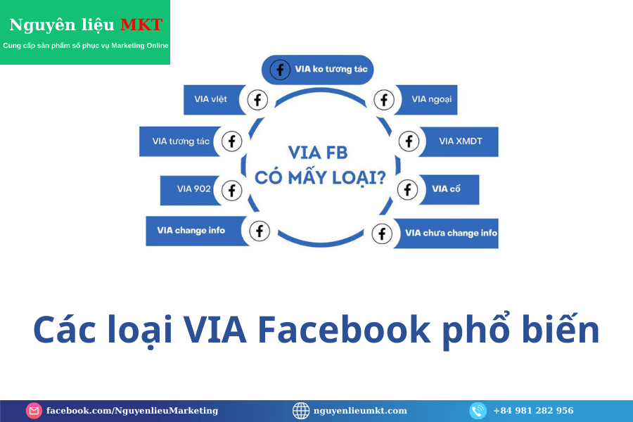Via Facebook được phân loại dựa trên nhiều tiêu chí khác nhau như: nguồn gốc, độ tuổi, mức độ tương tác, mục đích sử dụng,... Dưới đây là một số loại Via FB phổ biến nhất hiện nay: